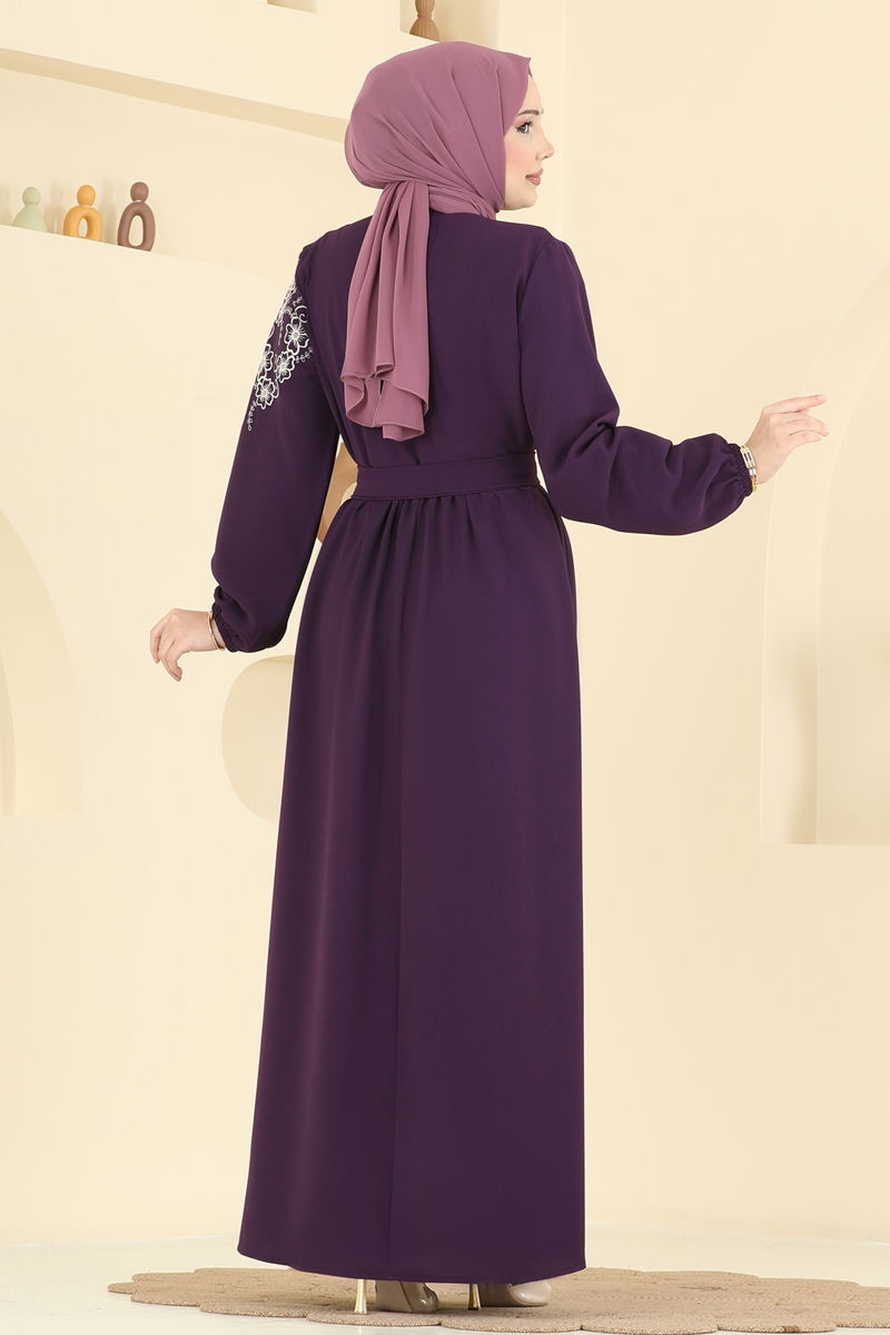 Nakış Detaylı Krep Elbise 550ASN888-MS Mor