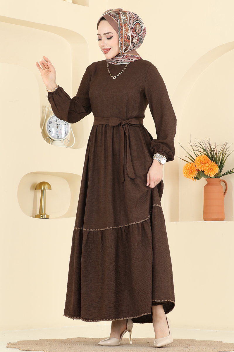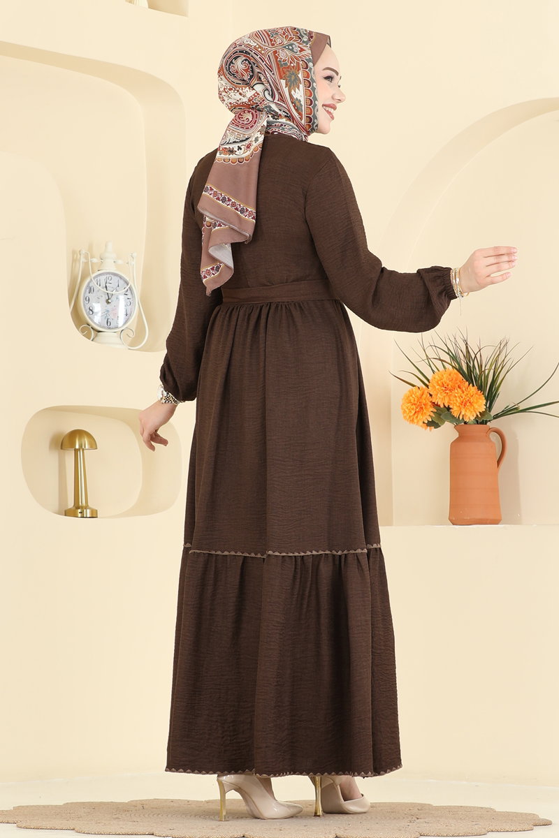 Nakış Detaylı Sofia Elbise 3253HBS856-MS Koyu Kahve
