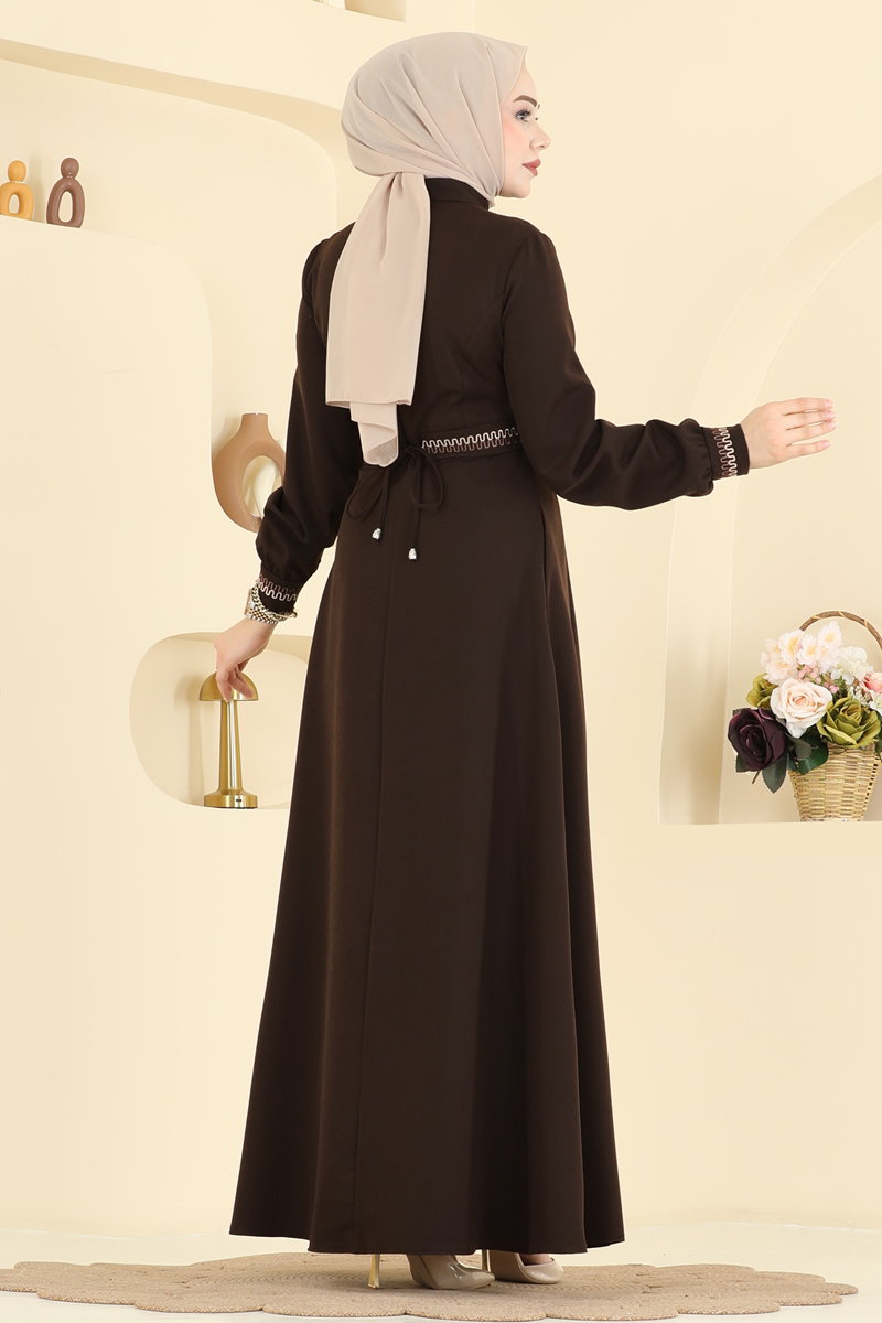 Nakış Detaylı Tesettür Ferace 2801SL432-MS Acı Kahve