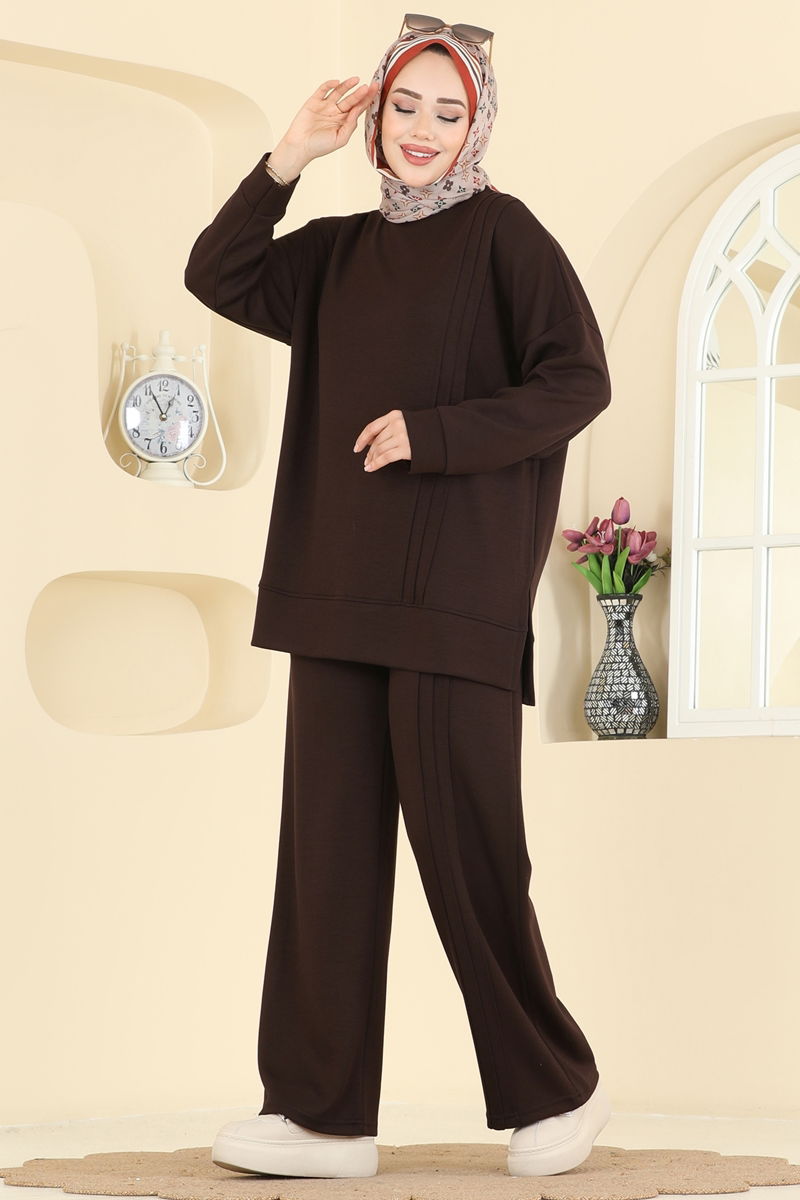 Nervür Ayrıntılı Modal Takım Koyu Kahverengi