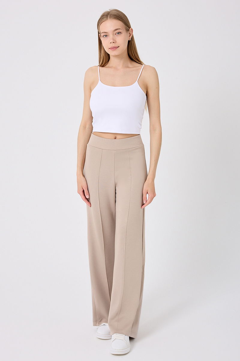 The Nervur Detail Palazzo Sweatpants are suitable for modest dressing and can be comfortably used in all seasons. Made from modal fabric, these pants are unlined and can be washed at 30 degrees with a gentle cycle. The waistband is elasticated, and the displayed model is size S.