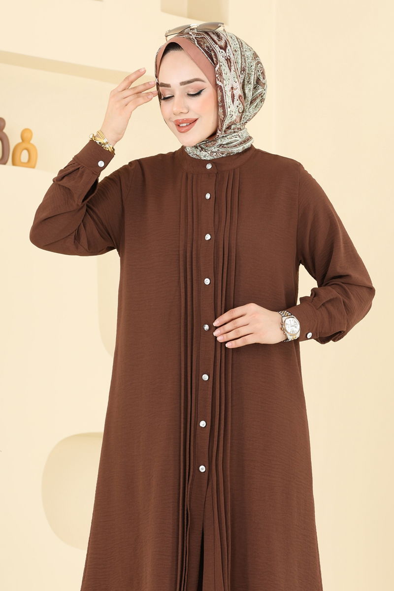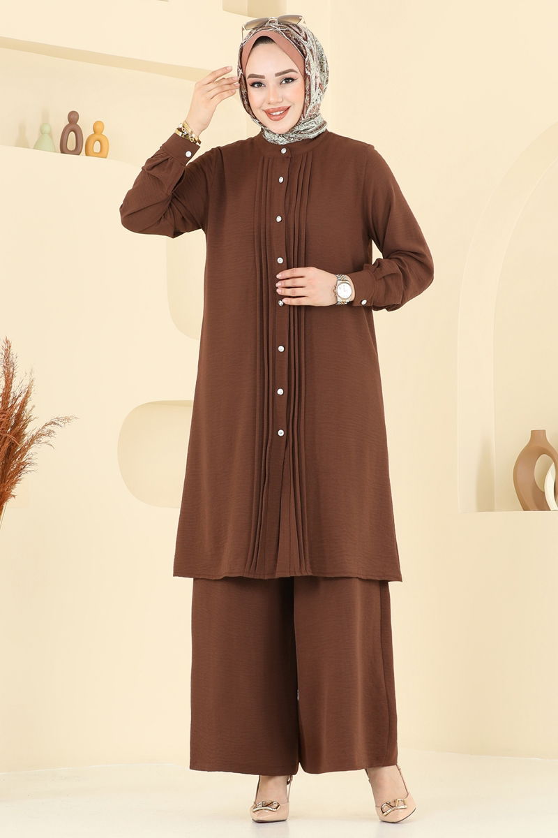 Nervür Detay Tesettür Takım 3104HBS856-MS Kahve