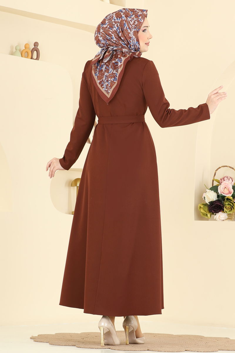 المنتج لديه ياقة دائرية. غير مبطنة. المنتج به سحاب في جزء من الخلف. المنتج يحتوي على حزام خصر مُخاط. الحزام متضمن، ،يمكن استخدامها حسب الرغبة قد يكون هناك اختلاف في الدرجة اللونية في المنتج بسبب التقاط الصور الفوتوغرافية.