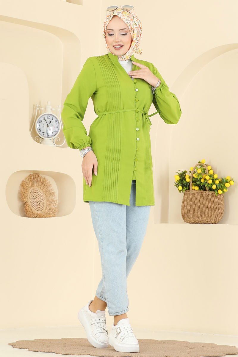 Nervür Detaylı Terikoton Gömlek 299ASN888-MS Yağ Yeşili