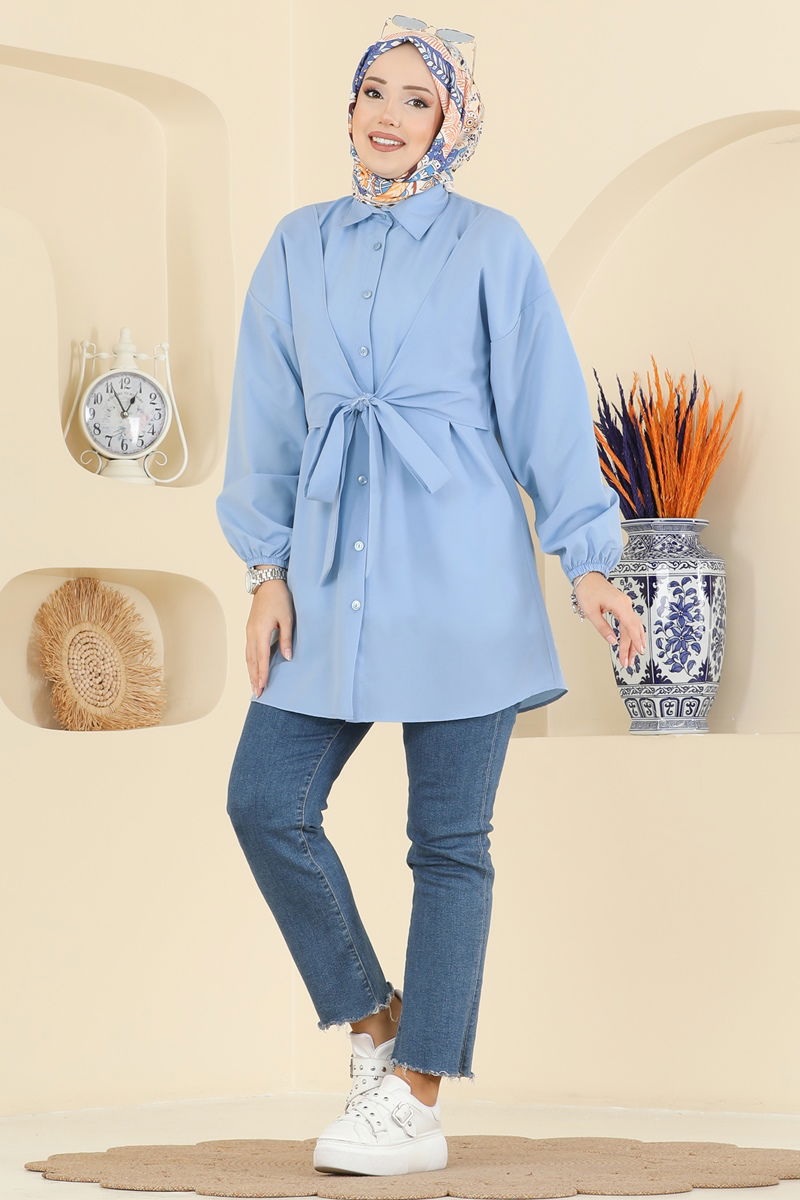Önden Bağlamalı Terikoton Gömlek 316ASN888-MS Bebe Mavisi