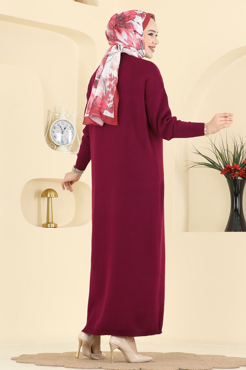 Önden Çizgi Detaylı Elbise 2772AYD574-MS Bordo