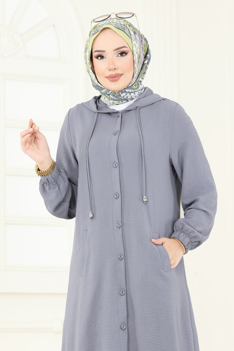 Ürün Detayları: Tesettür giyim tarzına uygun yeni sezon ürünüdür. Kapüşonlu ve önden düğmeli tasarımı vardır. Ürün astarsız yapıda olup, kapşon sabittir. Cep detayı bulunmakta ve manşetleri elastiktir. Renk tonu çekimlerden ötürü değişkenlik gösterebilir.