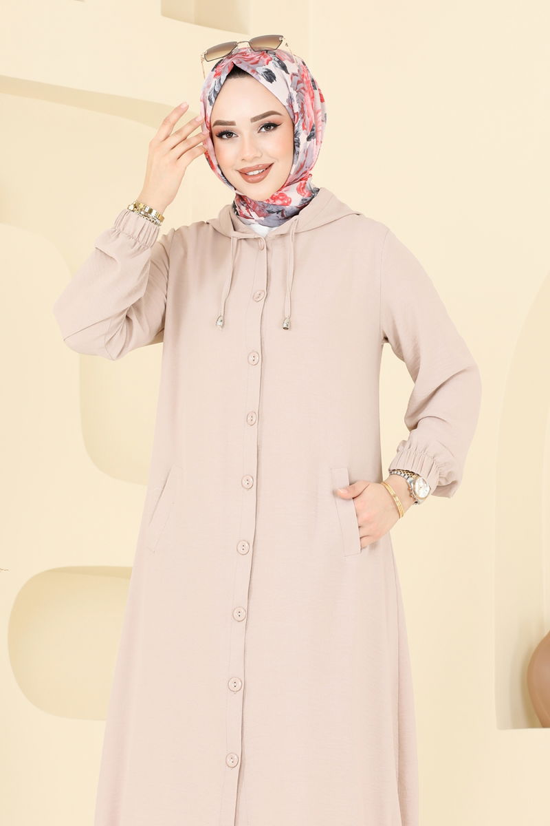 Product Feature : It is a new season hijab fashion product. The product has a Hooded collar. The product has From the front buttons. Unlined. The hood is sewn to the product. Pocket available. The cuff is rubberized. There may be a tonal difference in the product due to concept photo shoots.