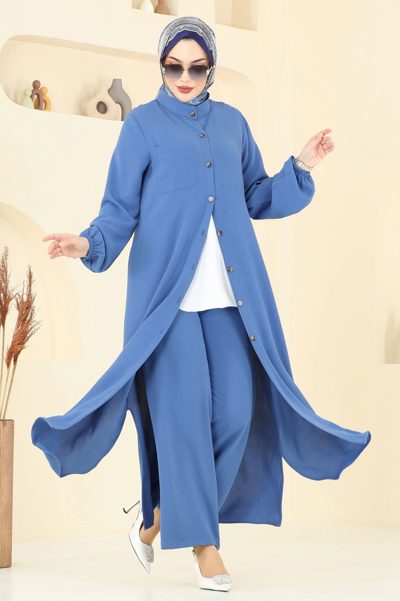 Ürün Özellikleri:Yeni sezon tesettür tasarımına uygun. Yarım kulak yakaya sahip. Ön kısmı düğmeli. Yanları yırtmaç detaylı tunik. Ürüne ek bluz dahil değildir, kombin önerisi amaçlı eklenmiştir. Göğüs cebi işlevseldir. Pantolonu lastikli, manşetleri elastik.Renk tonu çekim koşullarına göre değişiklik gösterebilir.