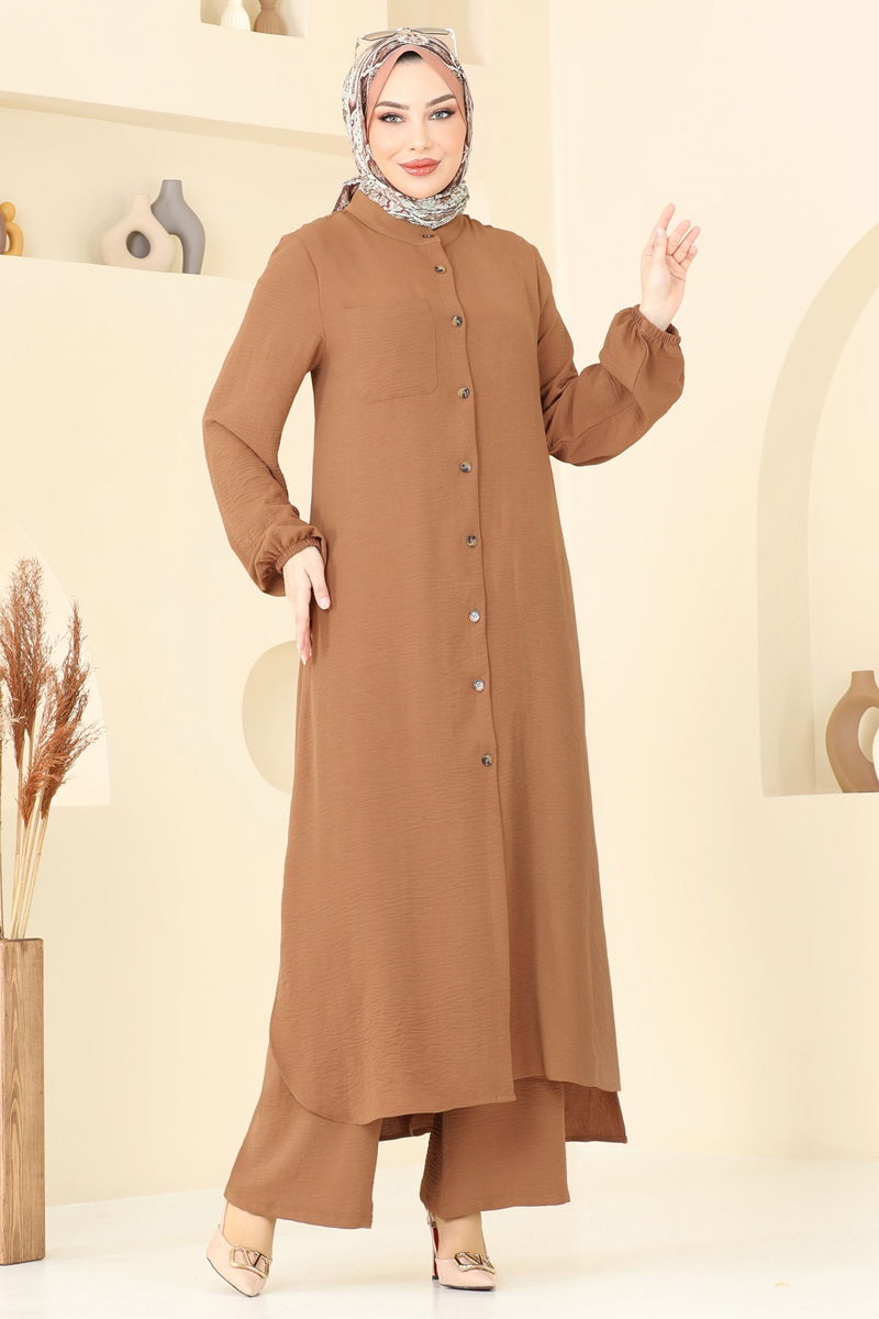 Tesettür Tunik ve Pantolon Seti - Taba Rengi