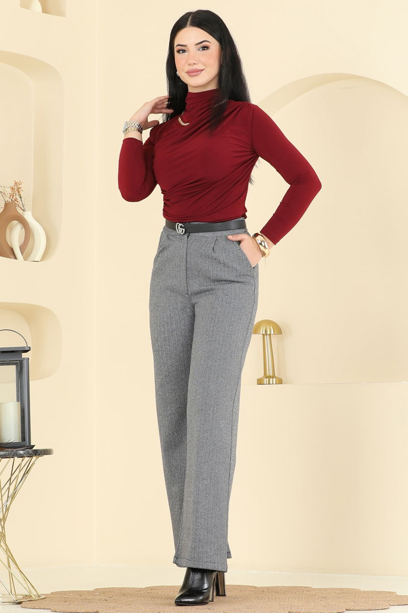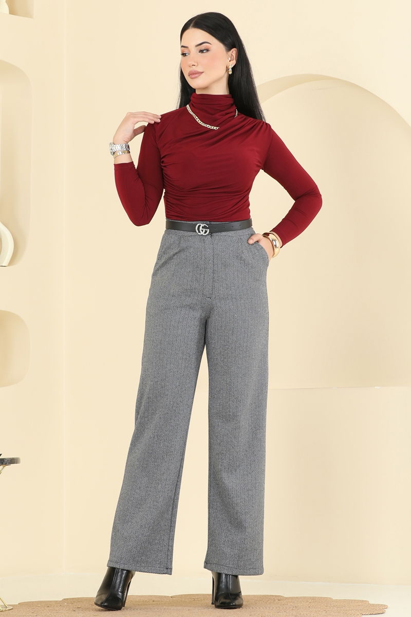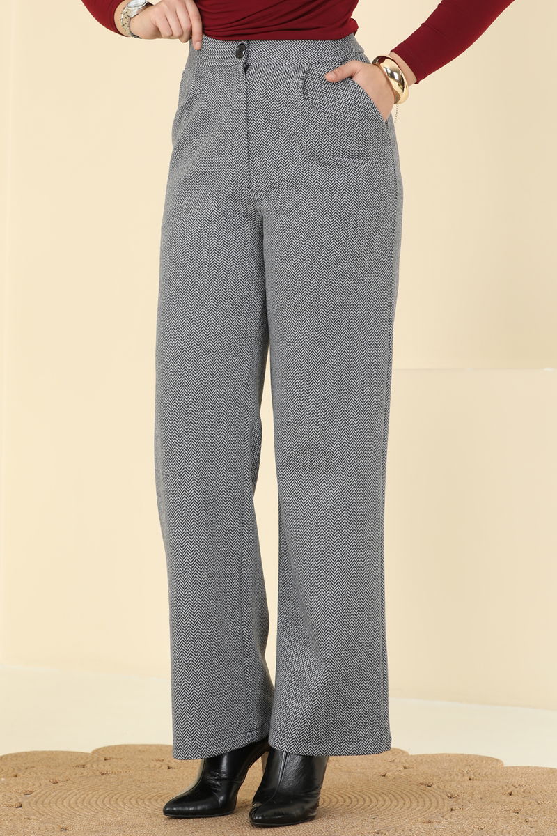 Önden Düğmeli Palazzo Pantolon 4131PM271-MS Gri