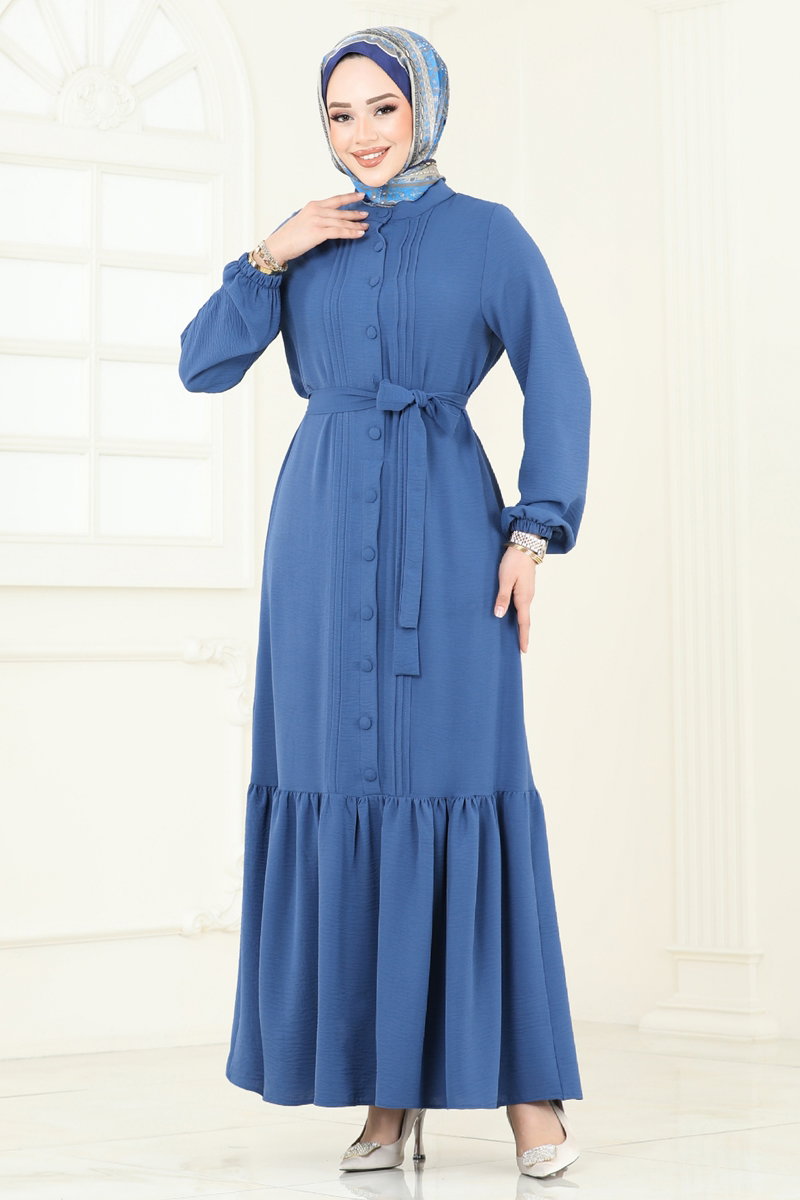 Önden Düğmeli Tesettür Elbise 2622SL432-MS İndigo