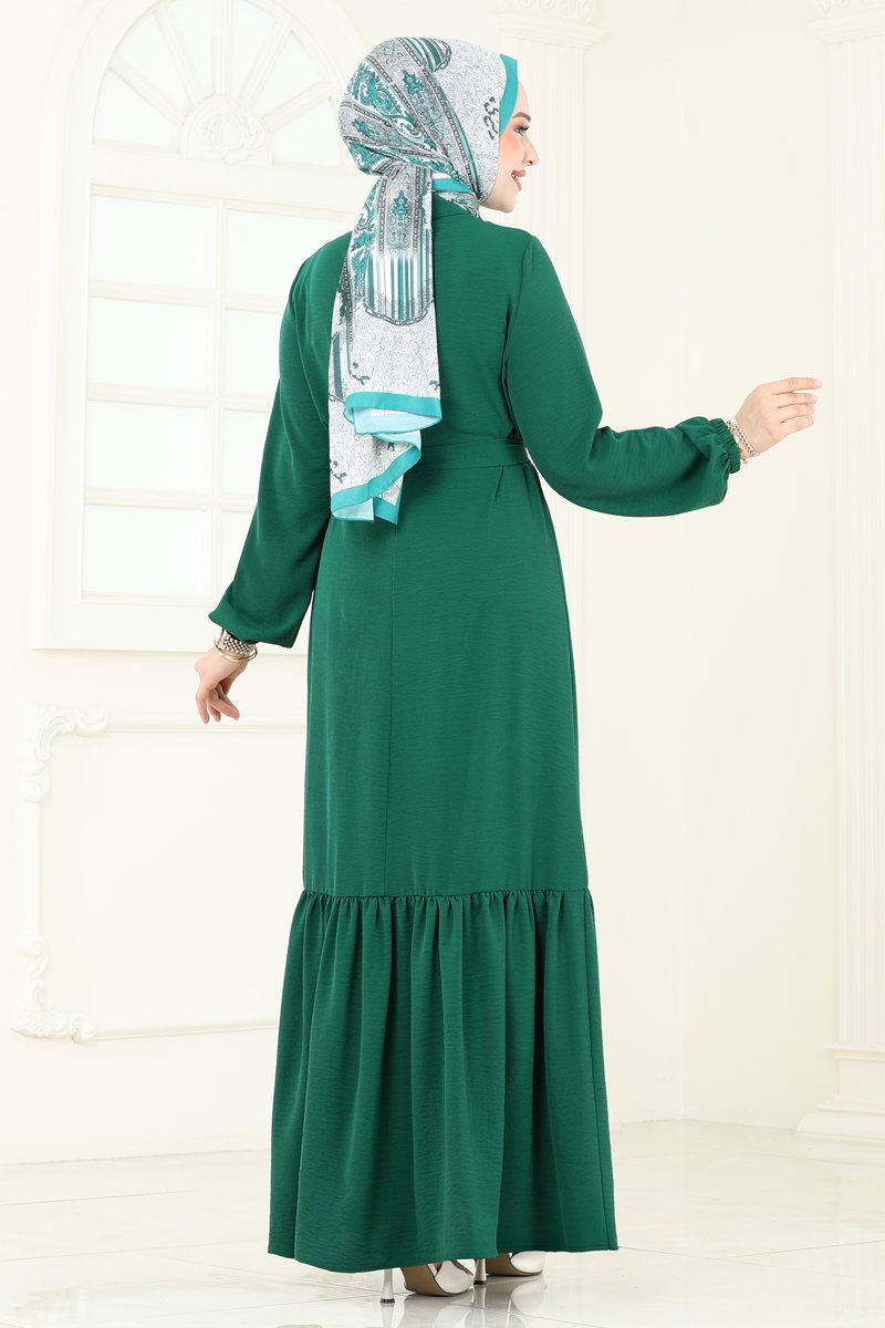 Önden Düğmeli Tesettür Elbise 2622SL432-MS Zümrüt