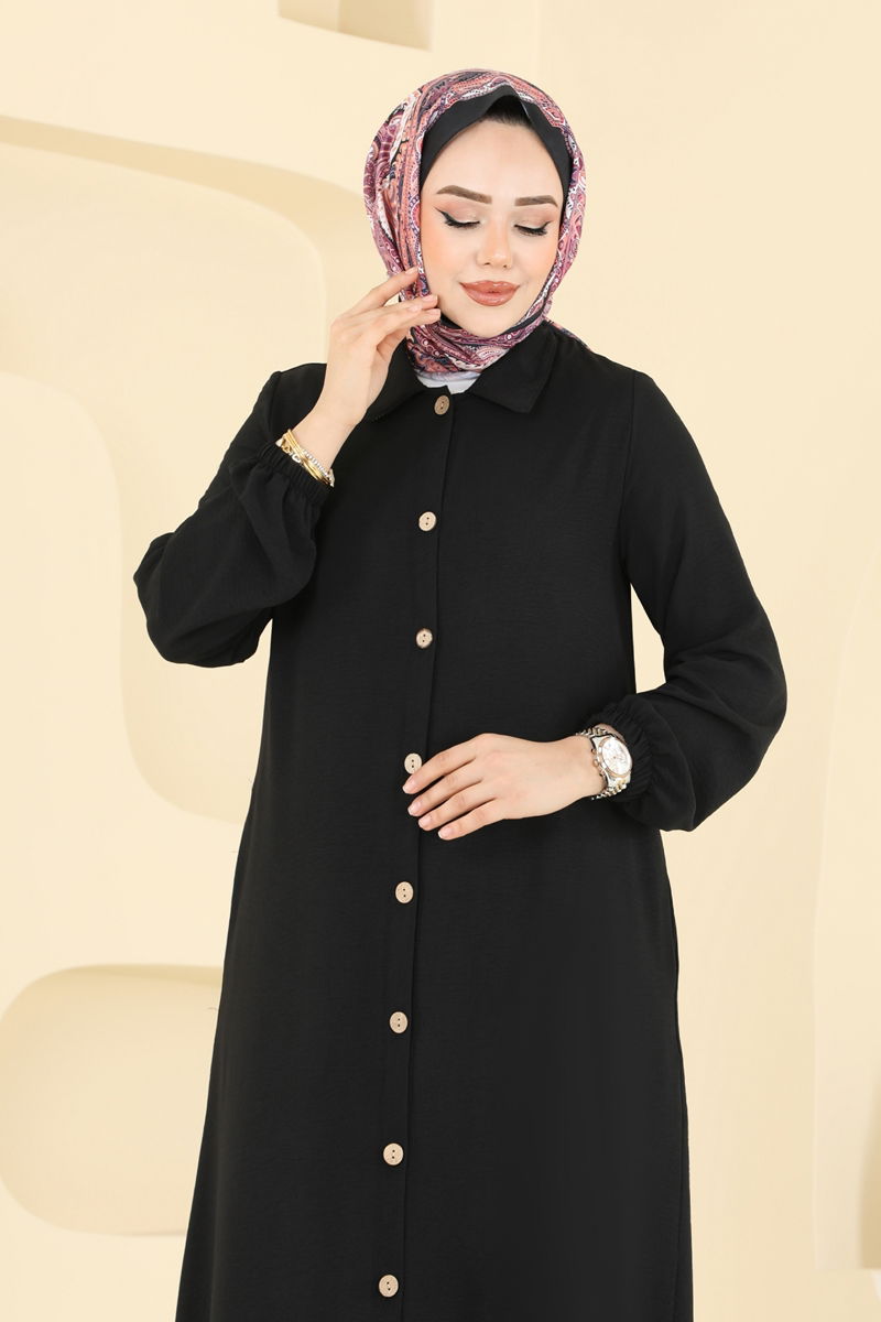Önden Düğmeli Tesettür Ferace 6017UZ662-MS Siyah