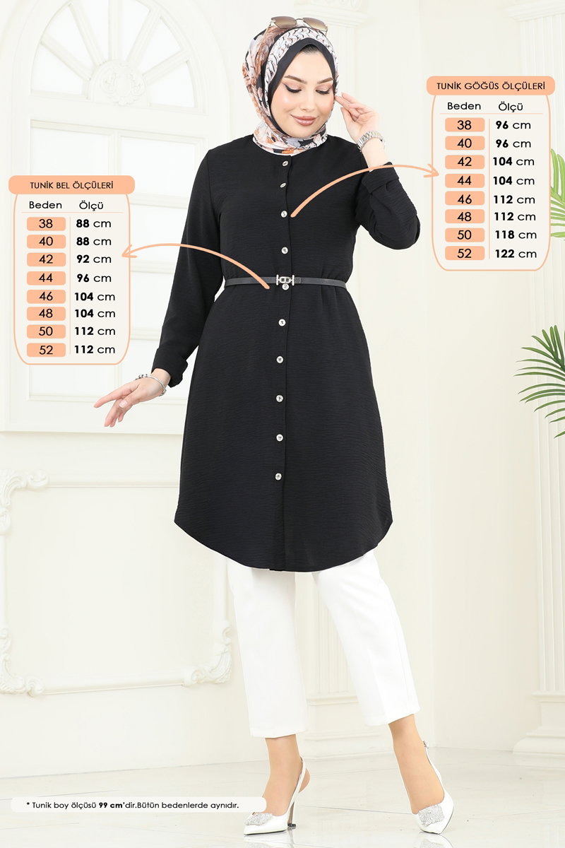 Önden Düğmeli Tesettür Tunik 2034BM387-MS Siyah
