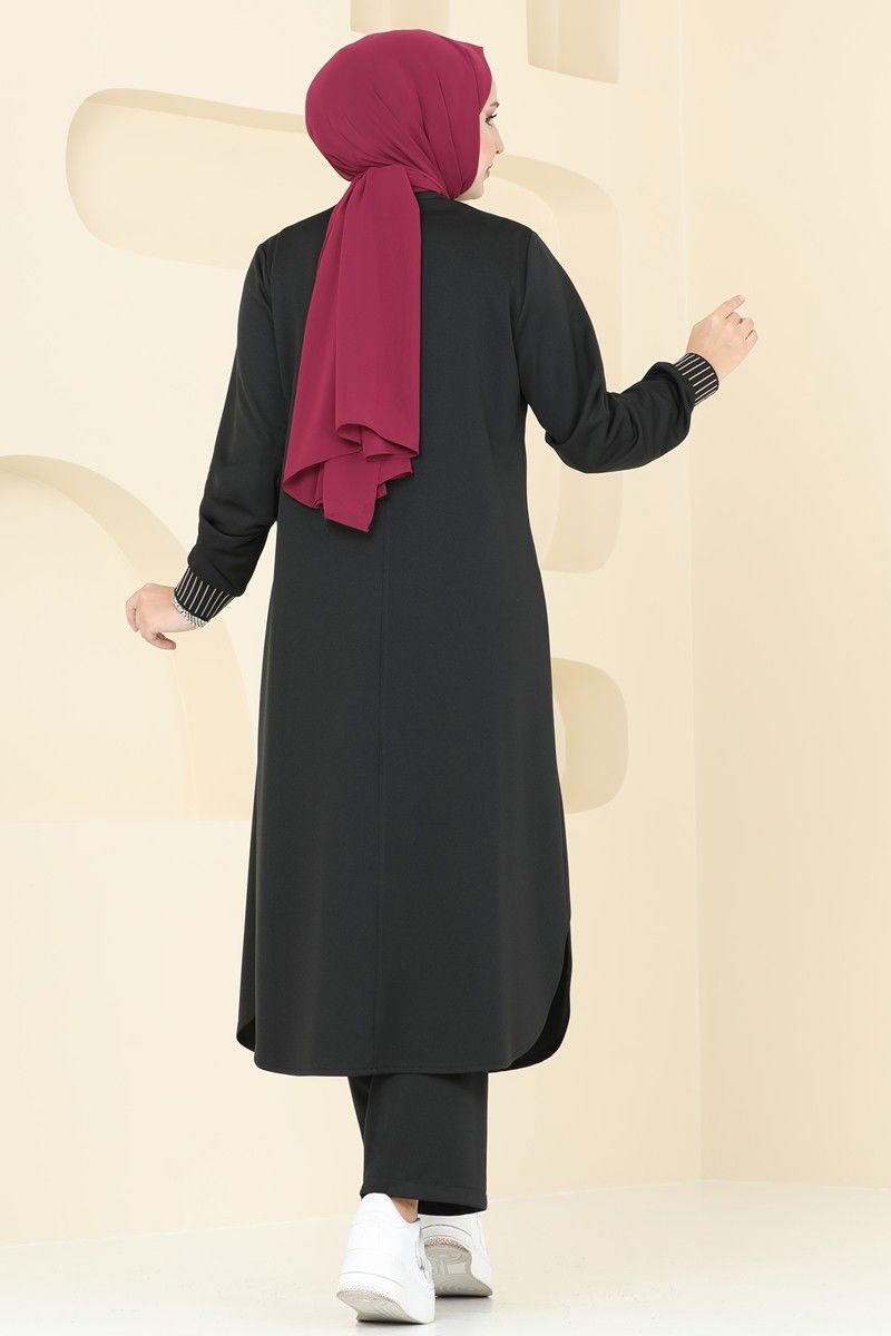 Önden Fermuarlı Garnili Takım 2554SL432-MS Siyah