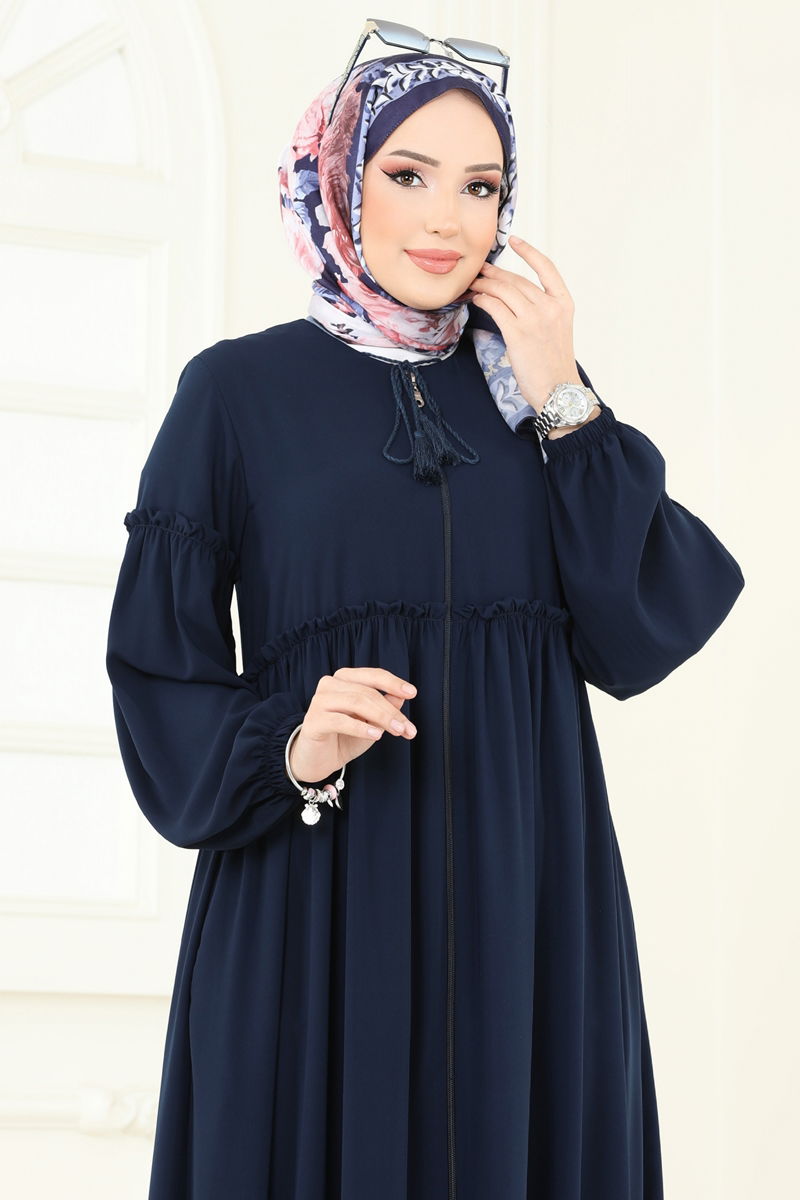 Önden Fermuarlı Medine İpeği Ferace 2638SL432-MS Laci