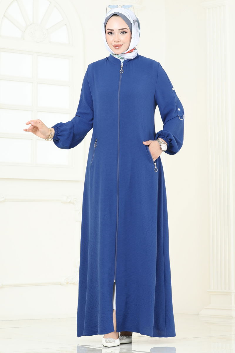 Önden Fermuarlı Pardesü Ferace - İndigo Rengi