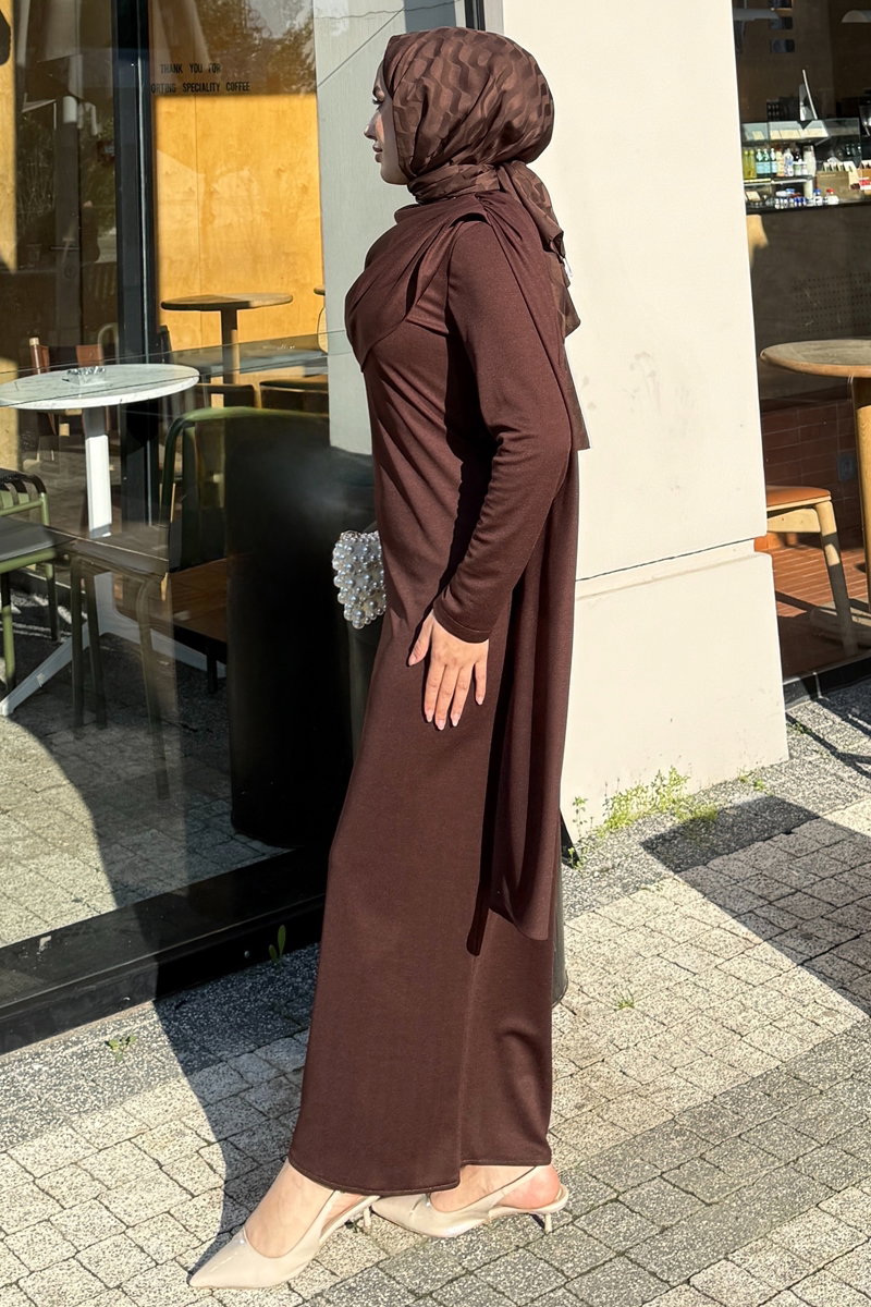 Önü Drapeli Örme Krep Elbise 4680ALGK1170-MS Kahve