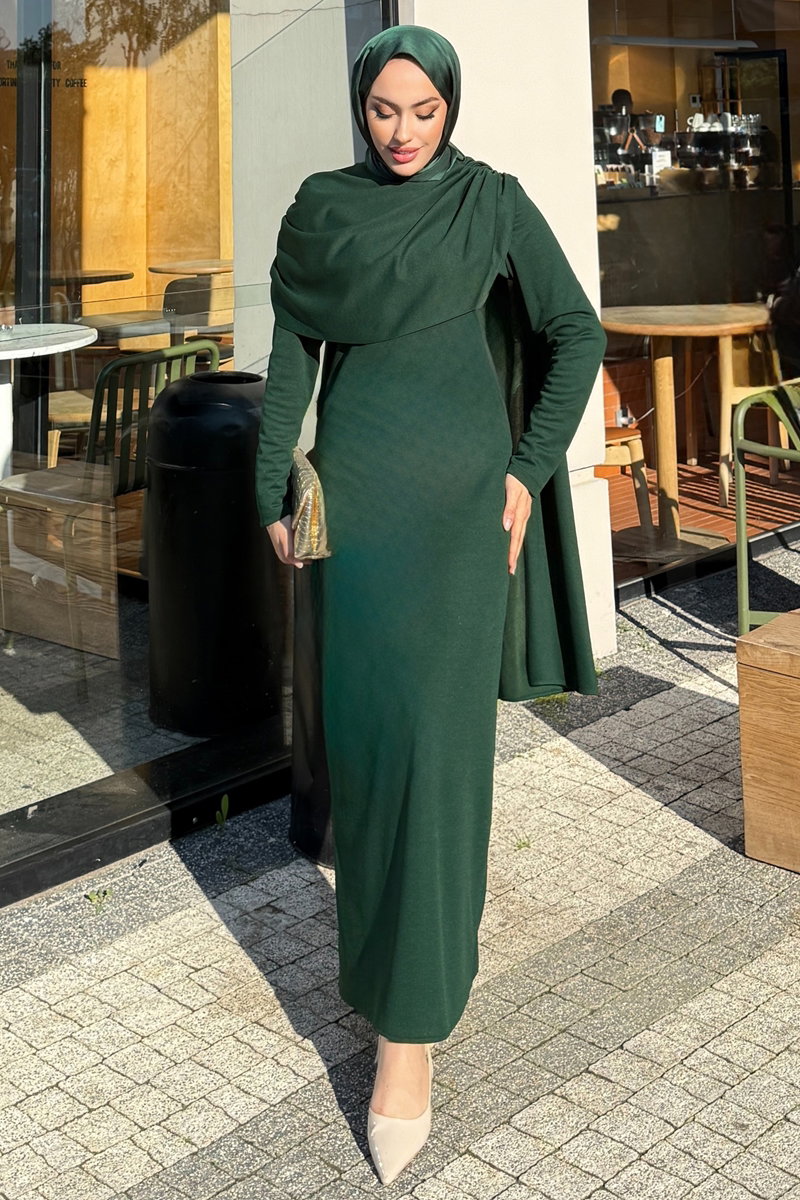 Zümrüt Yeşili Drapeli Örme Krep Elbise