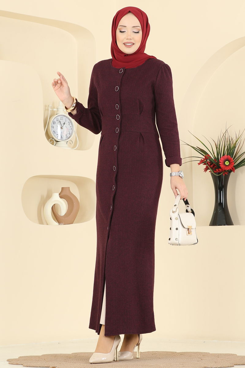 Önü Düğmeli Balıksırtı Elbise 24008UKB139-MS Bordo