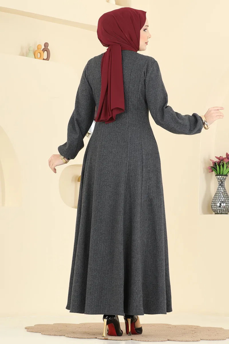 Önü Fermuarlı Balıksırtı Ferace 24091UKBK1161-MS Antrasit