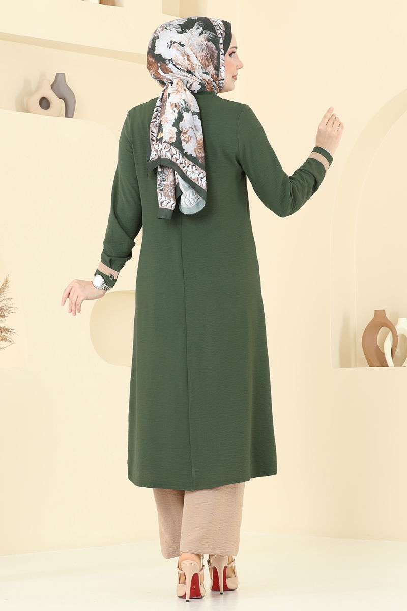 Önü Taş Detaylı Tesettür Takım PL9137-MS Haki&Vizyon