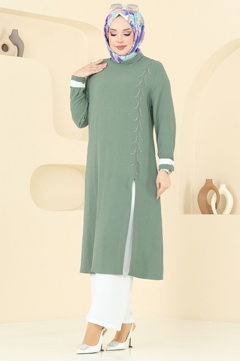 Önü Taş Detaylı Tesettür Takım PL9137-MS Mint&Ekru