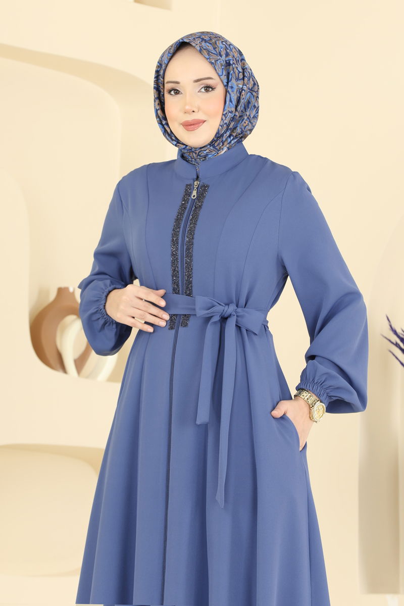 Önü Taşlı Bağlamalı Ferace 2821SL432-MS İndigo