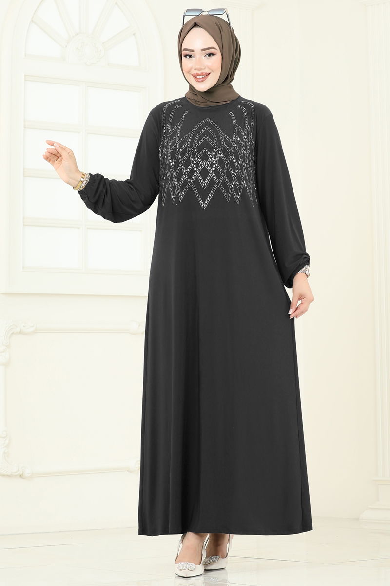 Önü Taşlı Şık Elbise 3401UZ662-MS Antrasit