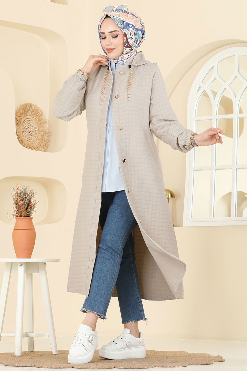 Product Feature : It is a new season hijab fashion product. The hood is detachable and can be used optionally. The product has a Hooded collar. The product has From the front buttons. Unlined. Details are sewn. Pocket available. The cuff is rubberized. There may be a tonal difference in the product due to concept photo shoots.