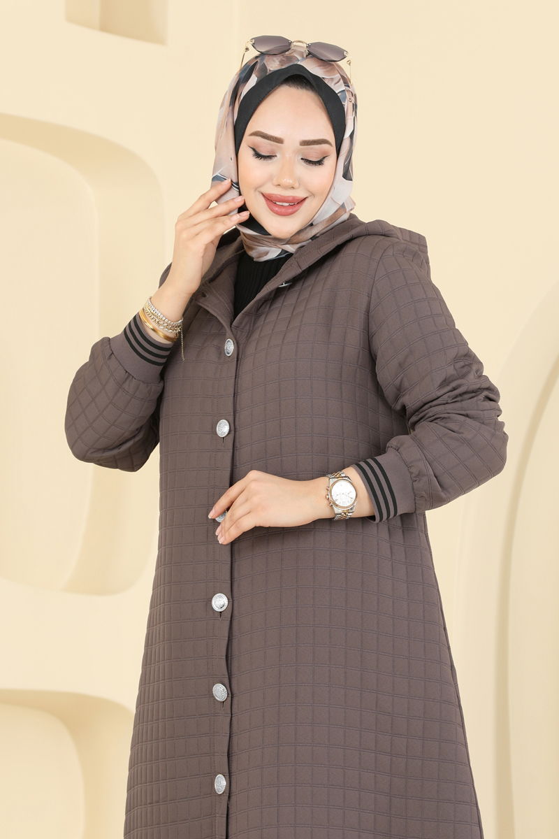 Product Feature : It is a new season hijab fashion product. The product has a Hooded collar. The product has From the front buttons. Unlined. The hood is sewn to the product. Pocket available. There may be a tonal difference in the product due to concept photo shoots.