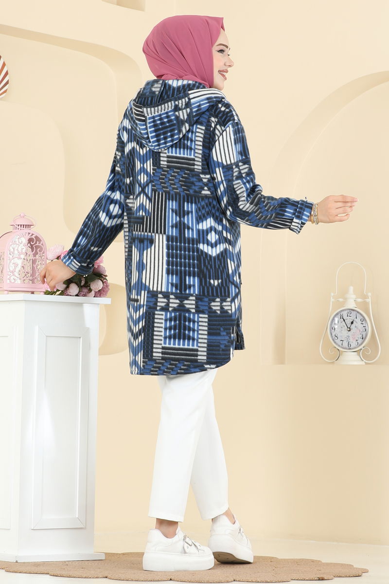 The Colorful Patterned Polar Cape is a modest wear article designed specifically for the autumn and winter seasons. Made from polar fleece, it offers gentle washability at 30 degrees, ensuring durability. The cape features a hood and adjustable neck ties, combining elegance with functionality. It has a zipper at the front, a fixed hood, and a pocket detail that enhances its practicality, making it both stylish and convenient for cool weather.