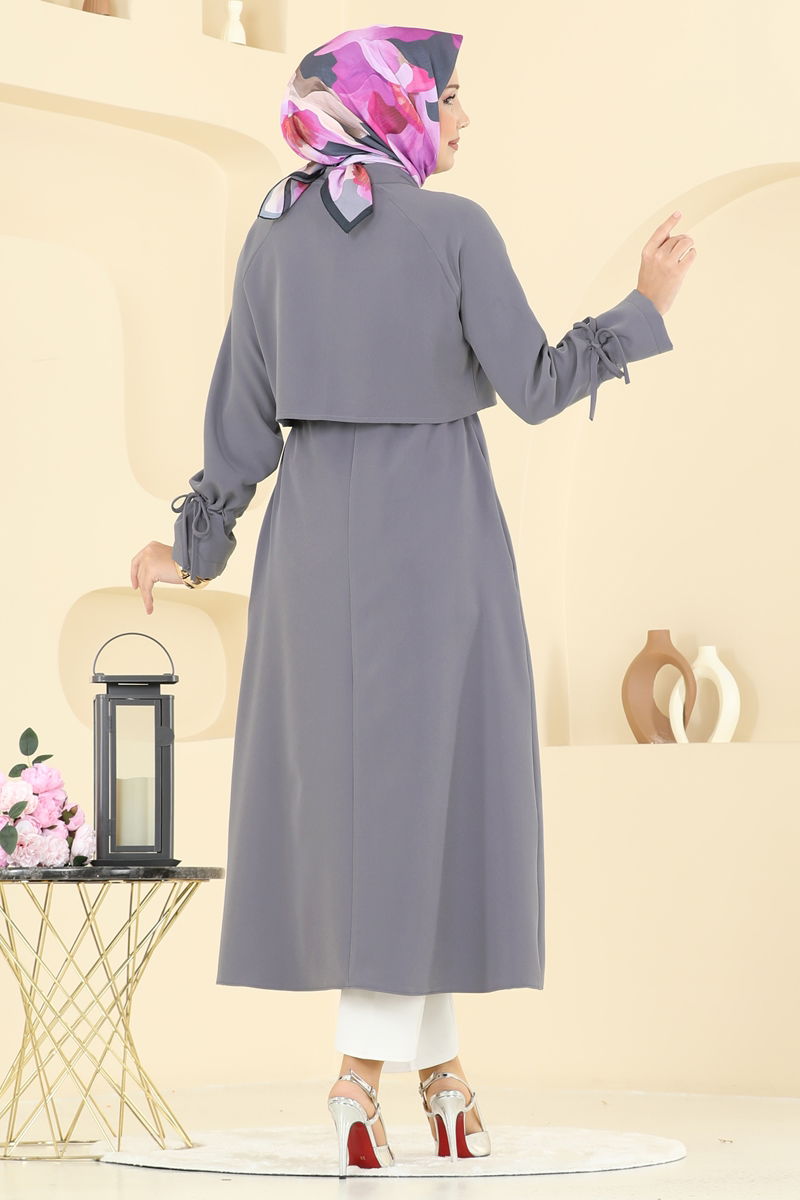يتميز بخصر ذو أربطة. تم خياطة تفصيل البوليرو على المنتج. المنتج لديه ياقة بيضوية. غير مبطنة. المنتج به سحاب في جزء من الأمام. يحتوي المنتج على جيب. مع حزام بأربطة. قد يكون هناك اختلاف في الدرجة اللونية في المنتج بسبب التقاط الصور الفوتوغرافية.