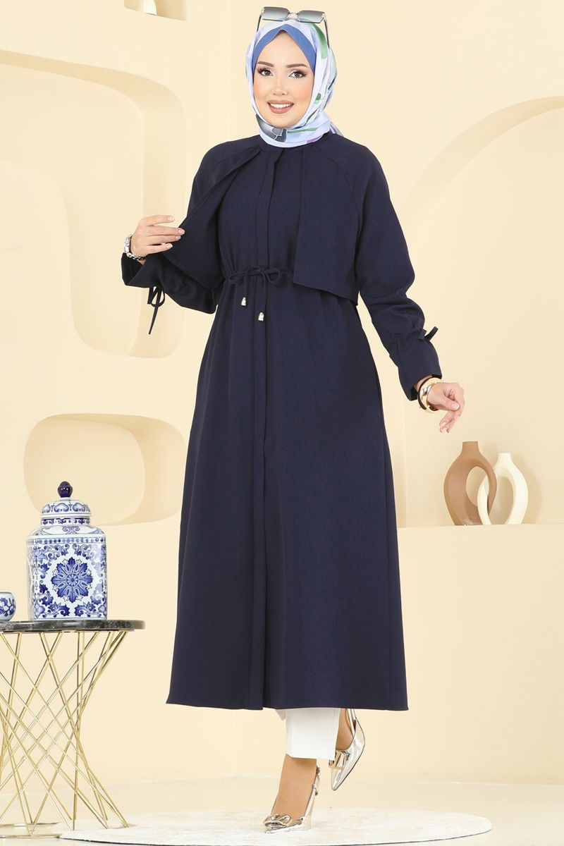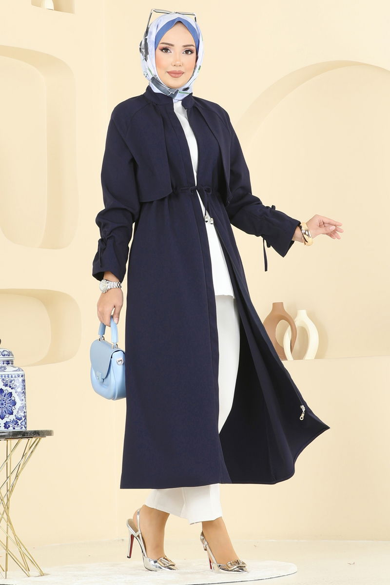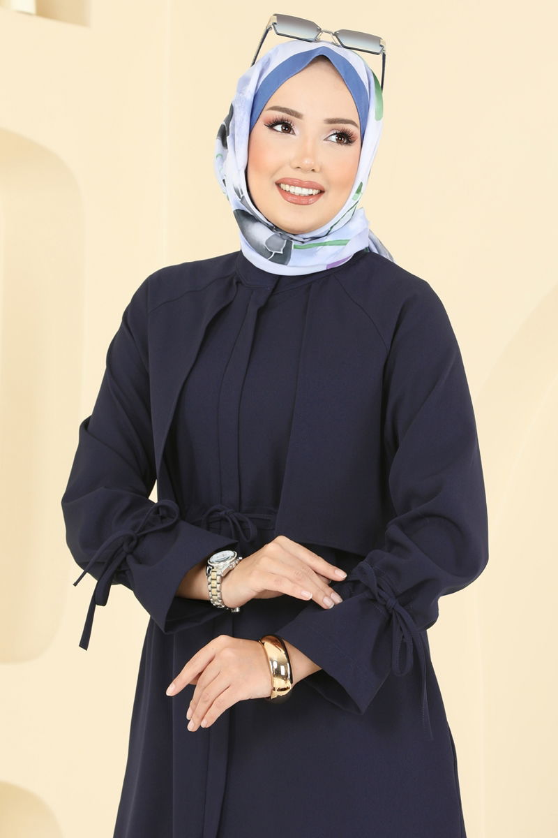 يتميز بخصر ذو أربطة. تم خياطة تفصيل البوليرو على المنتج. المنتج لديه ياقة بيضوية. غير مبطنة. المنتج به سحاب في جزء من الأمام. يحتوي المنتج على جيب. مع حزام بأربطة. قد يكون هناك اختلاف في الدرجة اللونية في المنتج بسبب التقاط الصور الفوتوغرافية.