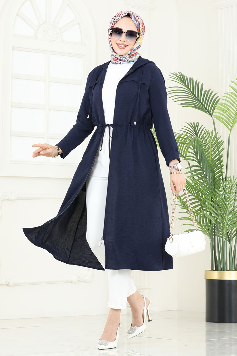 This hijab coat, which can be comfortably used in all four seasons, is lightweight and durable thanks to its special aerobin fabric. The model provides practical use with its front-zippered and hooded design. Its lining-free structure offers ideal comfort during seasonal transitions. Its adjustable drawstring waist allows you to fit it as you like. The pockets in the product provide extra convenience for daily use. This coat, which can be washed at 30 degrees with delicate washing, is ideal for long-term use.