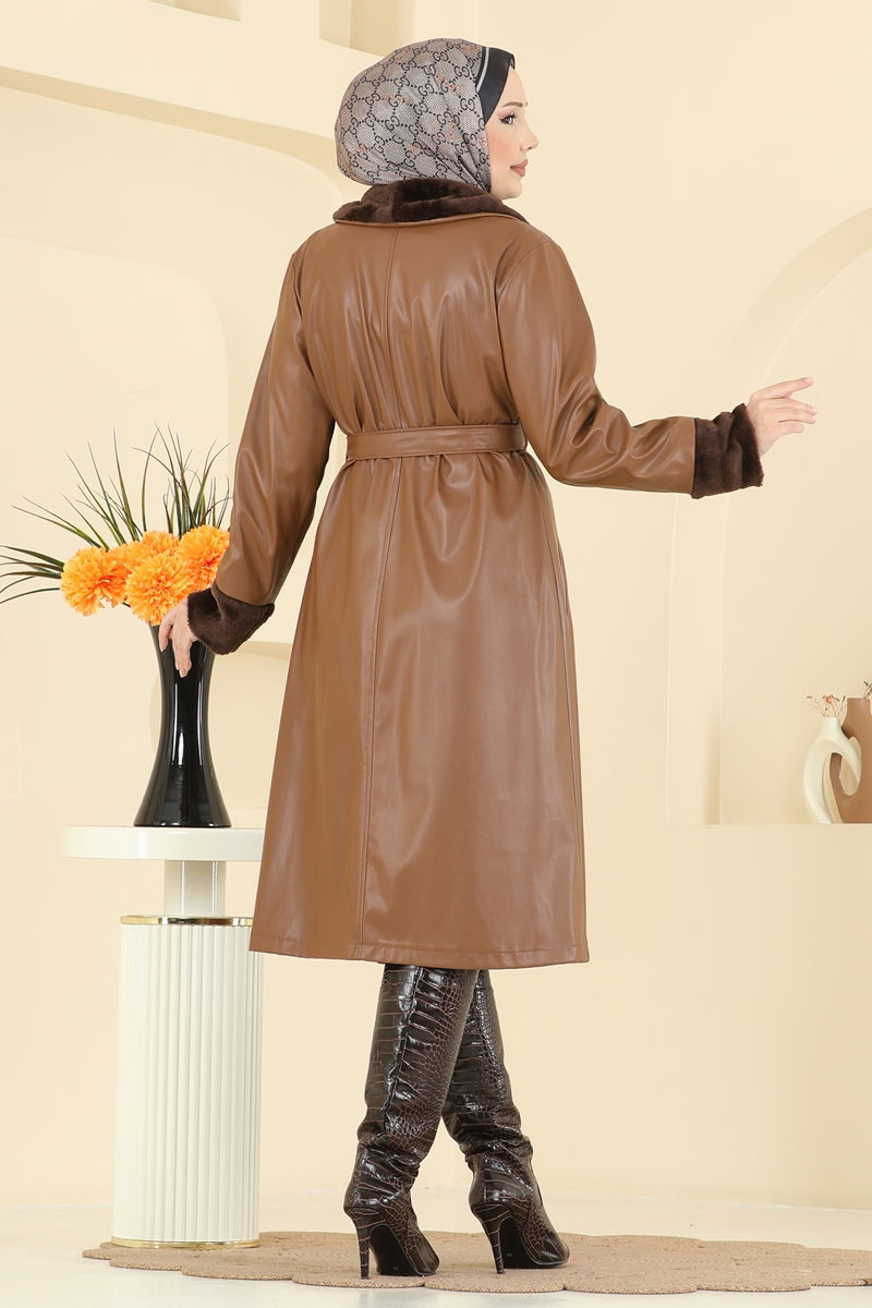 المنتج لديه ياقة الفراء. المنتج به أزرار من الأمام. مبطنة. يتم خياطة الفراء على المنتج. الحزام متضمن، ،يمكن استخدامها حسب الرغبة الجيب متاح. الاكمام مزينة بالفرو قد يكون هناك اختلاف في الدرجة اللونية في المنتج بسبب التقاط الصور الفوتوغرافية.