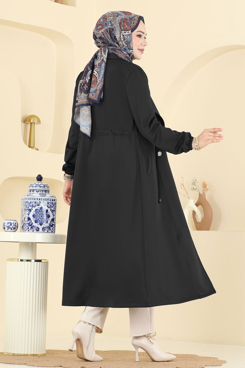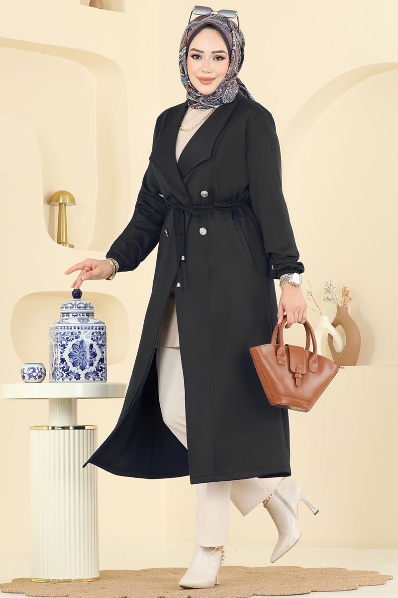 Product Feature : It is a new season hijab fashion product. There are double buttons available from the front. It has a laced waist. The product has a Double-breasted collar. Unlined. Pocket available. The cuff is rubberized. There may be a tonal difference in the product due to concept photo shoots.