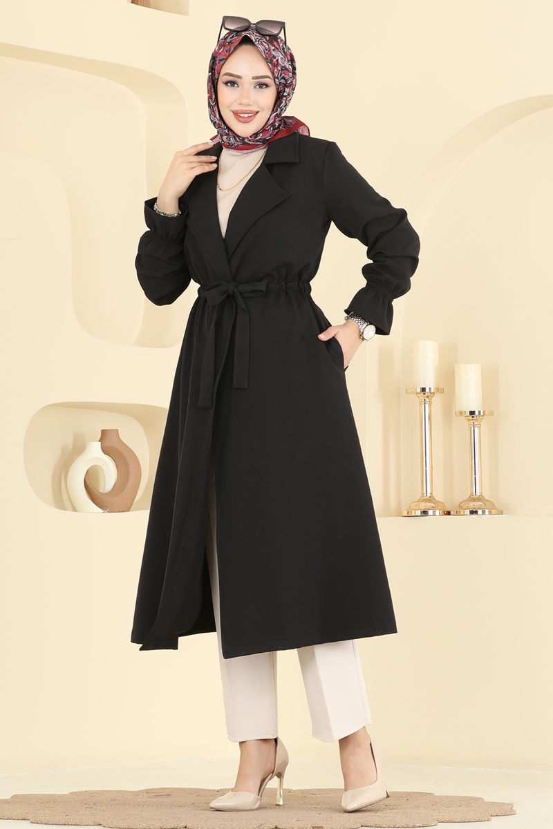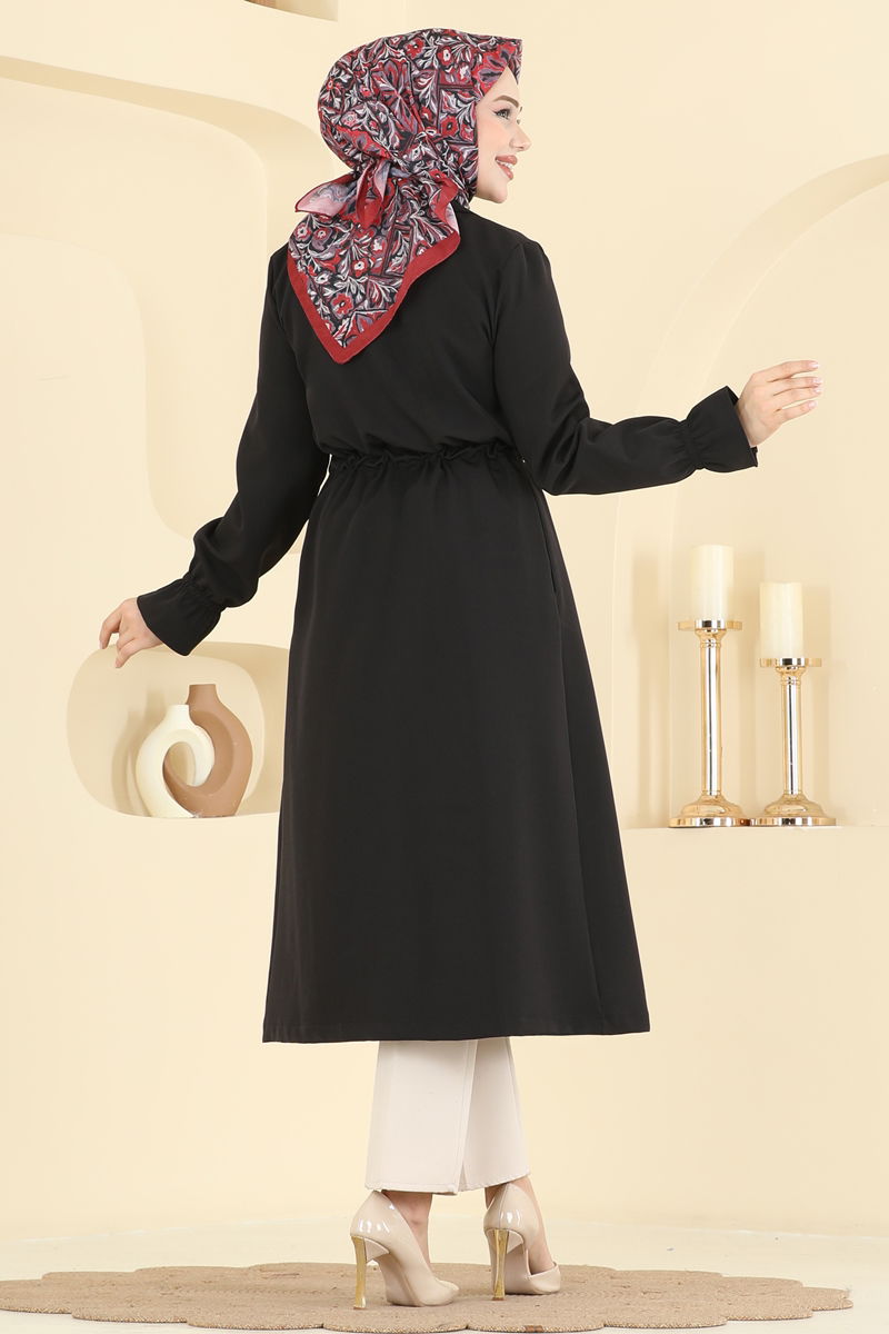 Product Feature : It is a new season hijab fashion product. It has a laced waist. The product has a Double-breasted collar. Unlined. The cuff is rubberized. There may be a tonal difference in the product due to concept photo shoots.