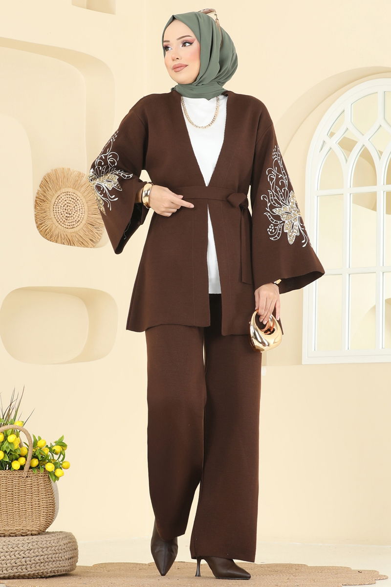 Product Feature : It is a new season hijab fashion product. The product has a Double-breasted collar. Unlined. Sequin sequin detail is sewn. Belt included, optional not available. The waist of the trousers is elastic. There may be a tonal difference in the product due to concept photo shoots.
