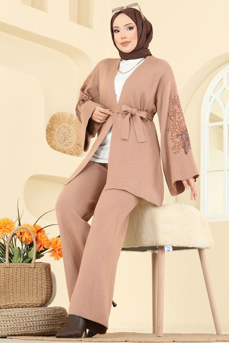 Product Feature : It is a new season hijab fashion product. The product has a Double-breasted collar. Unlined. Sequin sequin detail is sewn. Belt included, optional not available. The waist of the trousers is elastic. There may be a tonal difference in the product due to concept photo shoots.