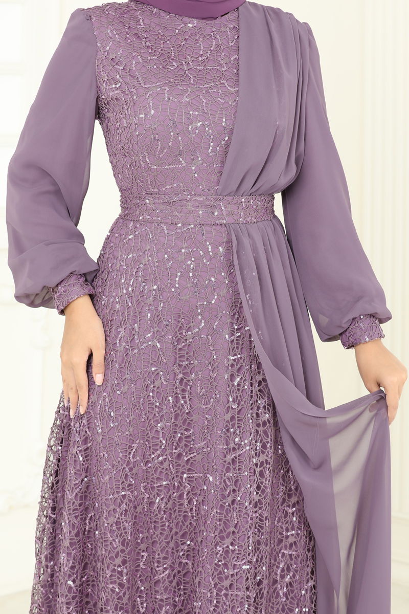 فستان سهرة ليلكي غامق 2819ELC1143-MS