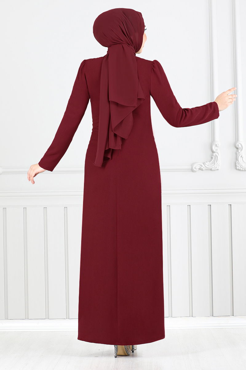 Robe de soirée avec détail de pierre BordoKumaş Caractéristique: Il est fait de tissu crêpe double face. Il peut être utilisé en quatre saisons saisonnières. Caractéristique du produit: Le hijab de la nouvelle saison est un produit de mode. Le produit est le collier dominant. Il n'est pas doublé. Le produit est zippé à l'arrière. Les pierres sont de la colle. Il peut y avoir une différence de tonalité dans le produit en raison de séances photo conceptuelles. Lavage: Seul le nettoyage à sec doit être effectué. (L'article sur le modèle est de taille 38.) Cette élégante robe de soirée détaillée en pierre complétera votre élégance à chaque moment spécial tout au long des quatre saisons. Cette robe hijab, en tissu crêpe, a un col dominant et une structure non doublée. La fermeture éclair à l'arrière facilite l'habillage. Les détails décoratifs en pierre ajoutent un charme moderne à la robe. N'oubliez pas que seul le nettoyage à sec est nécessaire pour l'entretien de la robe.Poids(Kg):0.55