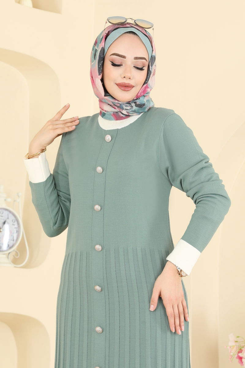 Pile Detaylı Triko Elbise 1357MT581-MS Mint