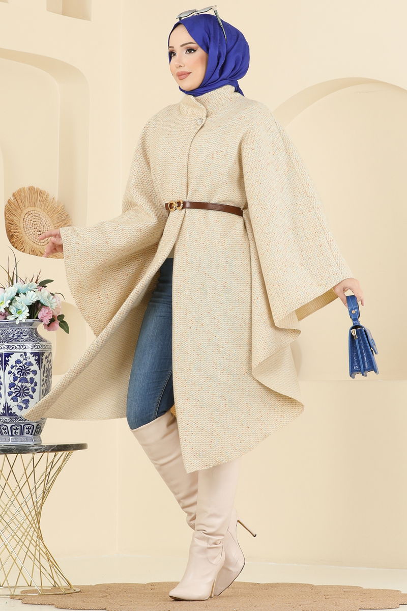 This Button-Detailed Tweed Poncho is a sophisticated choice suited for modest fashion. It can be washed easily at 30 degrees with a gentle cycle. Featuring a mandarin collar and unlined design, it offers comfort and style. The one-size-fits-all approach ensures it accommodates everyone. A functional button at the front makes it practical to wear. The included belt can be adjusted or removed according to style preferences, making it a chic and warm choice for winter!