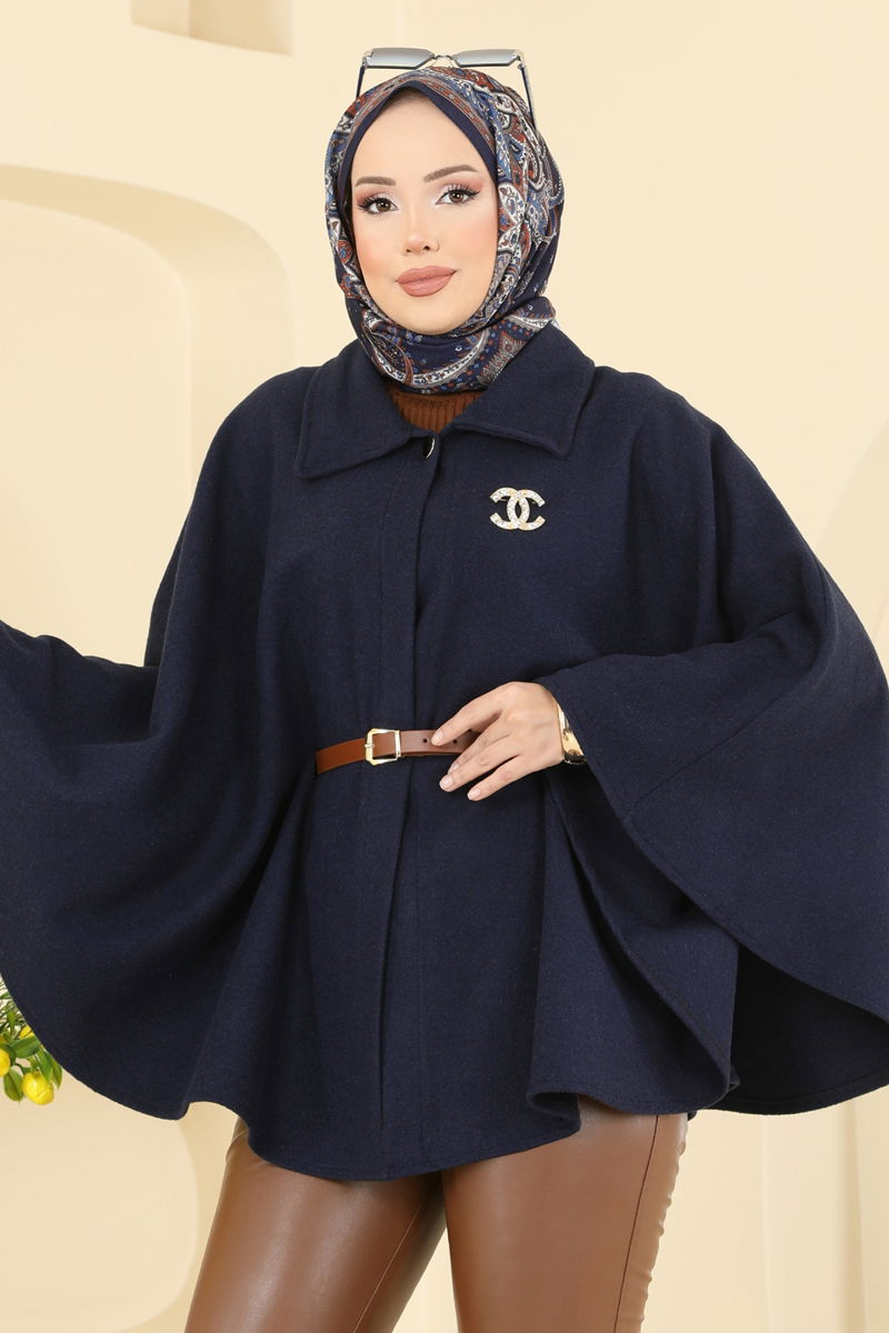 The Shirt Collar Cashmere Poncho is designed as a modest wear product. Ideal for Autumn and Winter, this poncho can be washed at 30 degrees on a delicate wash cycle. Made of high-quality cashmere fabric, it features a shirt collar design and is unlined. Offered in a standard size, the front has a button for ease of use, and the included belt is stitched at both ends with the middle left unstitched. The belt can be used optionally.