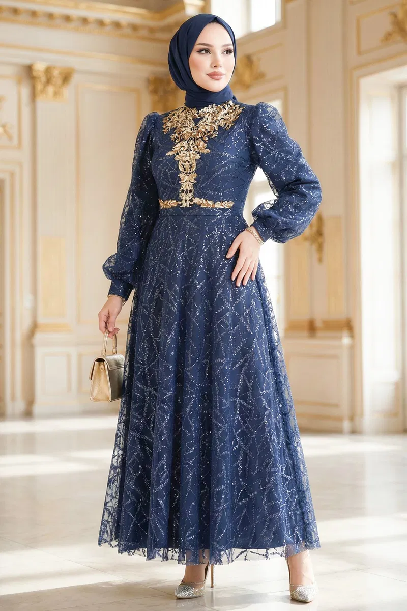 Simli Tül Kumaşlı Abiye Elbise - Laci