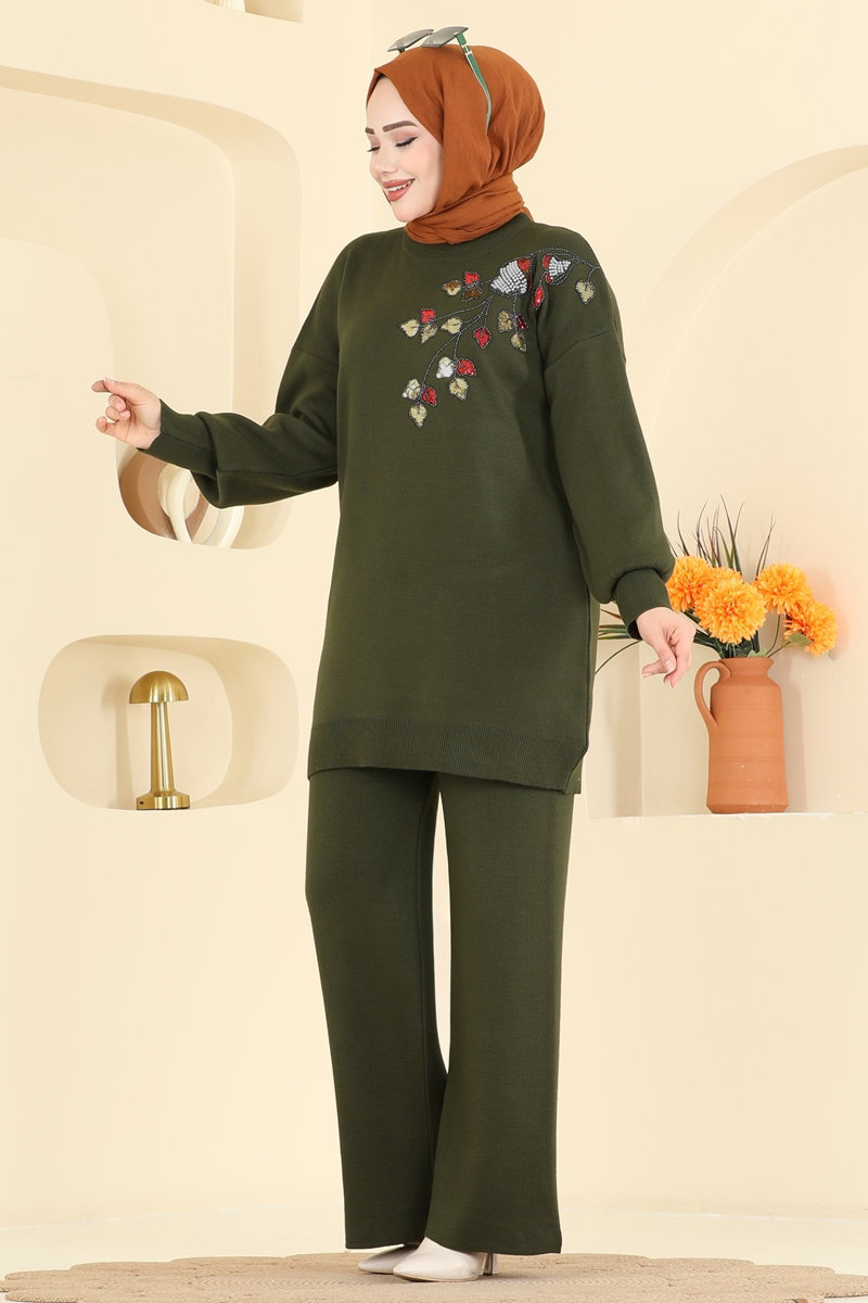 Pul İşlemeli Triko Takım 1101MT581-MS Haki