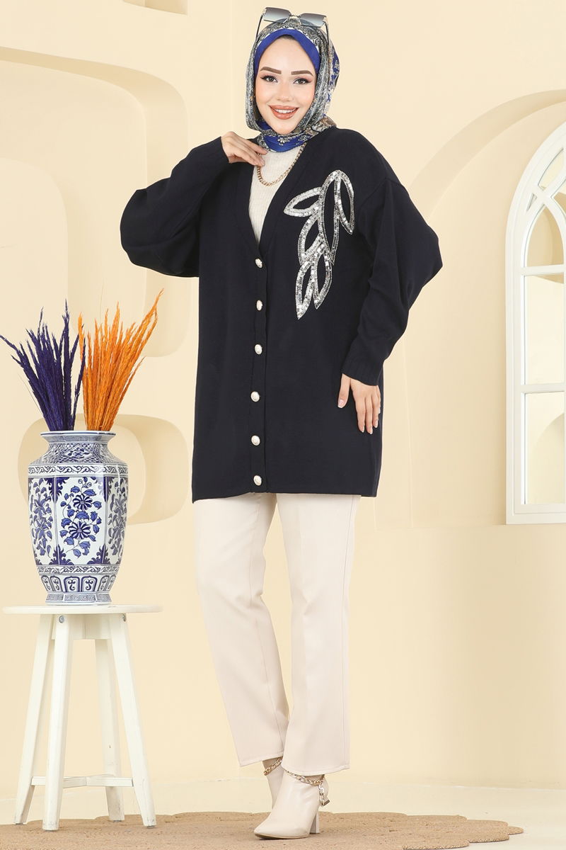 Hırka Detaylı Pul Payetli Gümüş&Laci Modeli