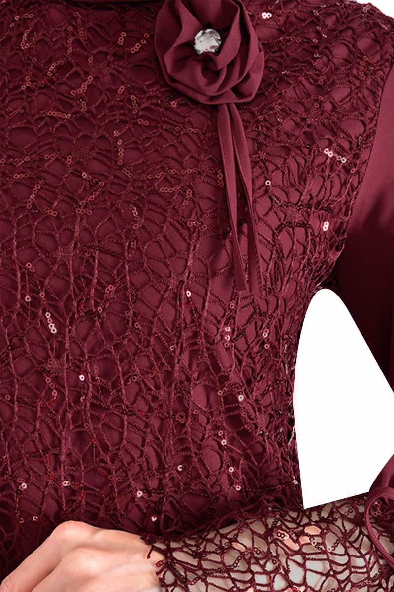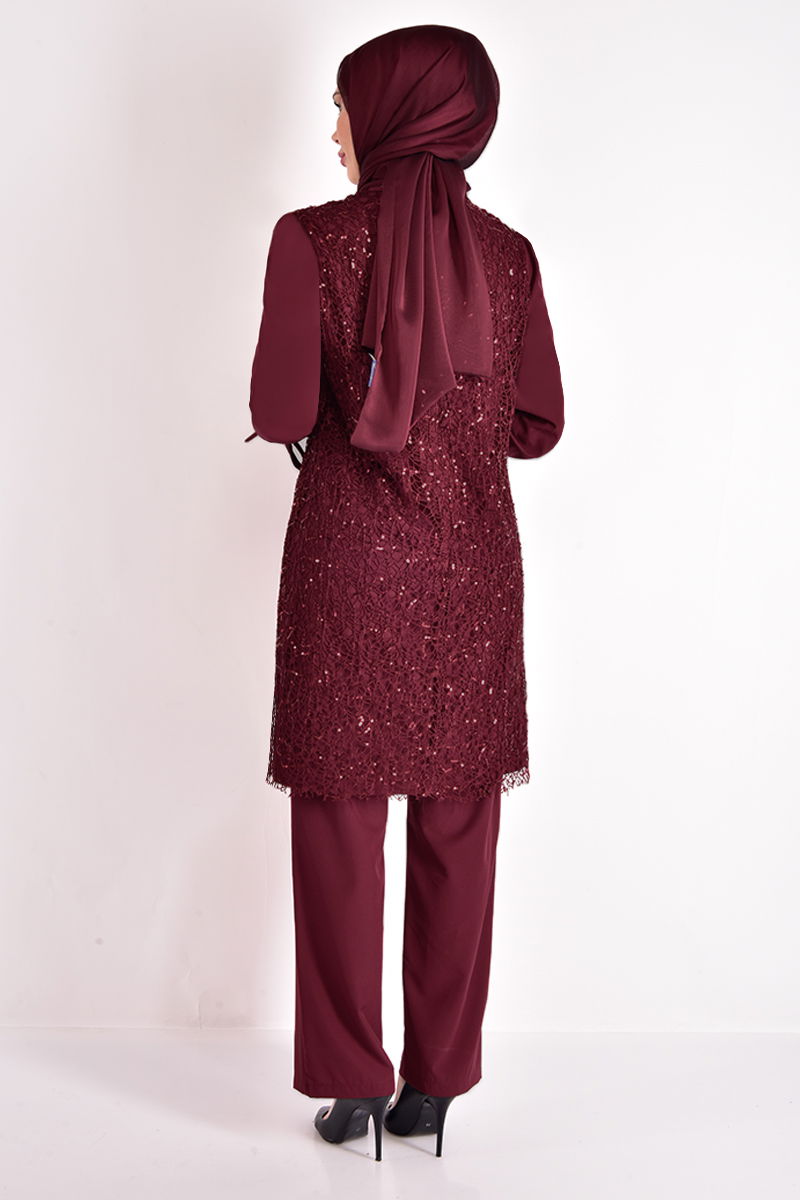 Caractéristique du tissu: La tunique est en dentelle résille pailletée et le tissu ayrobin est utilisé sur la manche. Le pantalon est en tissu ayrobin.Longueur du produit : Tunique: 95 cm. - Pantalon: 102 cm.Caractéristique du produit: Le produit est un produit de saison estivale. La tunique a une fermeture éclair cachée à l'arrière. Détail de dentelle est utilisé sur les poignets des manches. La taille du pantalon est élastique. La broche est mobile. Le produit est envoyé en trois parties, à savoir un pantalon tunique et une broche.Dimensions du mannequin Taille: 1,68 (Sans chaussures) Poitrine: 87 Taille: 67Basen: 95le produit sur l'homme est une taille 38.REMARQUE: Le moule du produit est un moule individuel, il est recommandé de commander votre propre taille. Il peut y avoir de légères différences de tons dans les couleurs des produits en raison des photos conceptuelles.